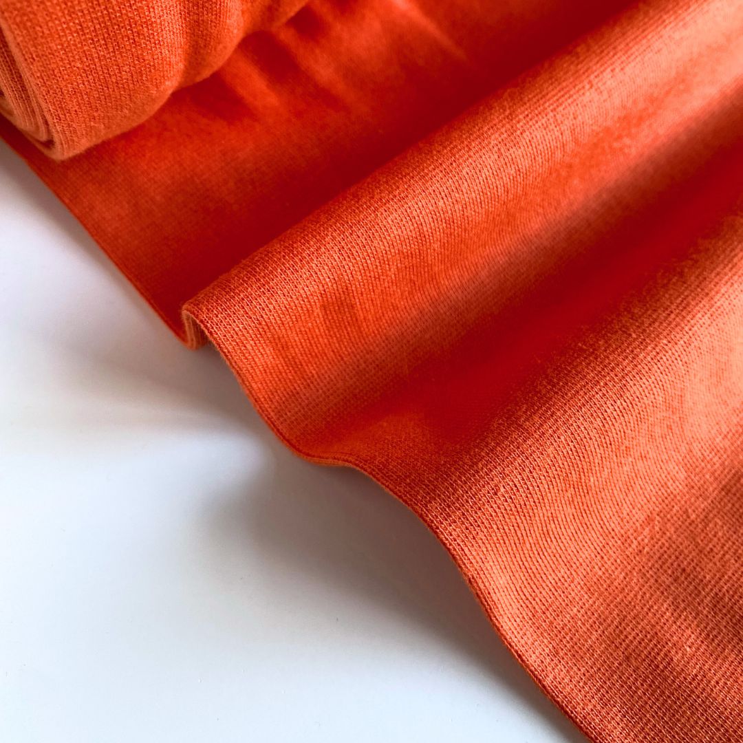 Super quality circular knitted cuff fabric in orange. This stretch knit is perfect for cuffs, collars, wristbands, neckbands and waistbands.