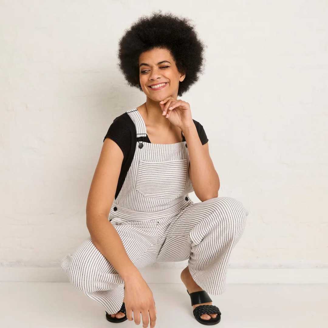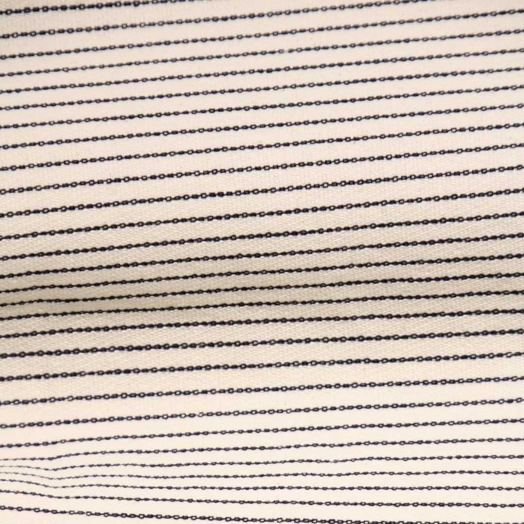 Add a touch of embellishment to your standard bottom-weight patterns with this Atelier Jupe striped denim fabric. It's medium-weight, perfect for trousers, jackets, dungarees, and even bags and totes. The stripes are made from small chain stitches that add a subtle texture, and while they run at a right angle to the selvedge, you can use the fabric in either direction. Made in Spain.