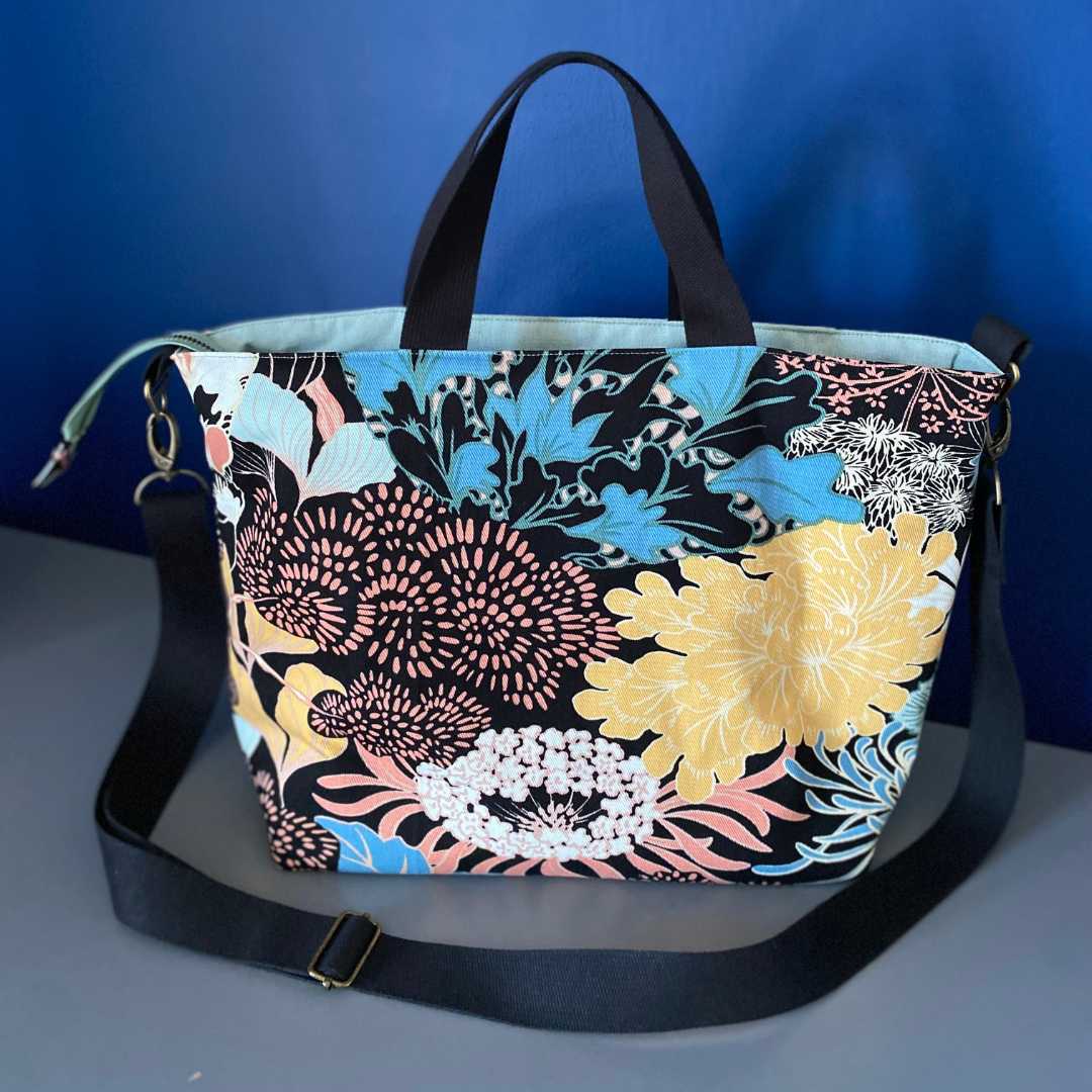 The tall MidnightSUN makes a fab tote/crossbody bag or a larger project bag; approximate finished internal dimensions: 30cm (12”) tall x 37cm (14 ½”) wide at the main opening, 13cm (5”) deep at the base.