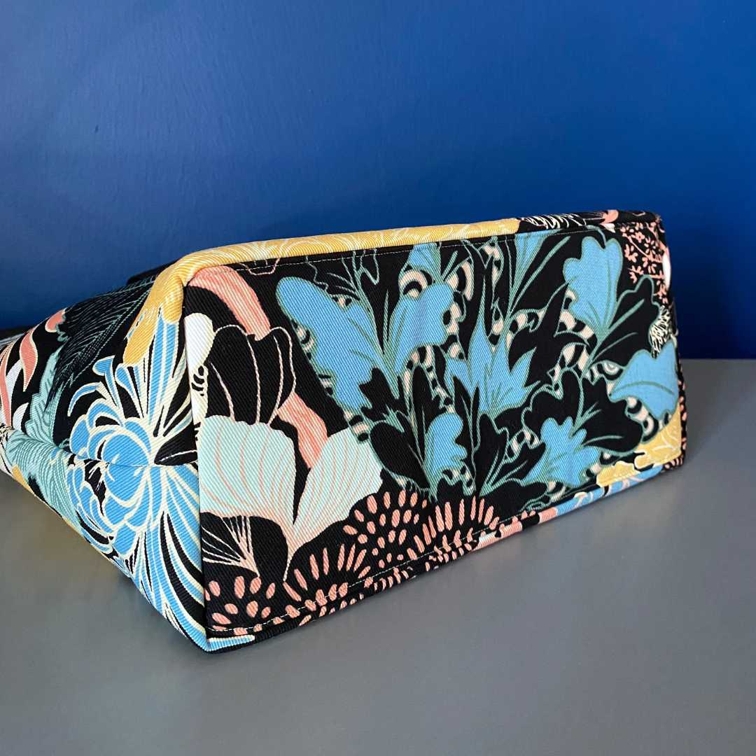 The cropped version is a great size for a generous handbag or project bag; approximate finished internal dimensions: 22cm (8 ½”) tall x 37cm (14 ½”) wide at the main opening, 13cm (5”) deep at the base.