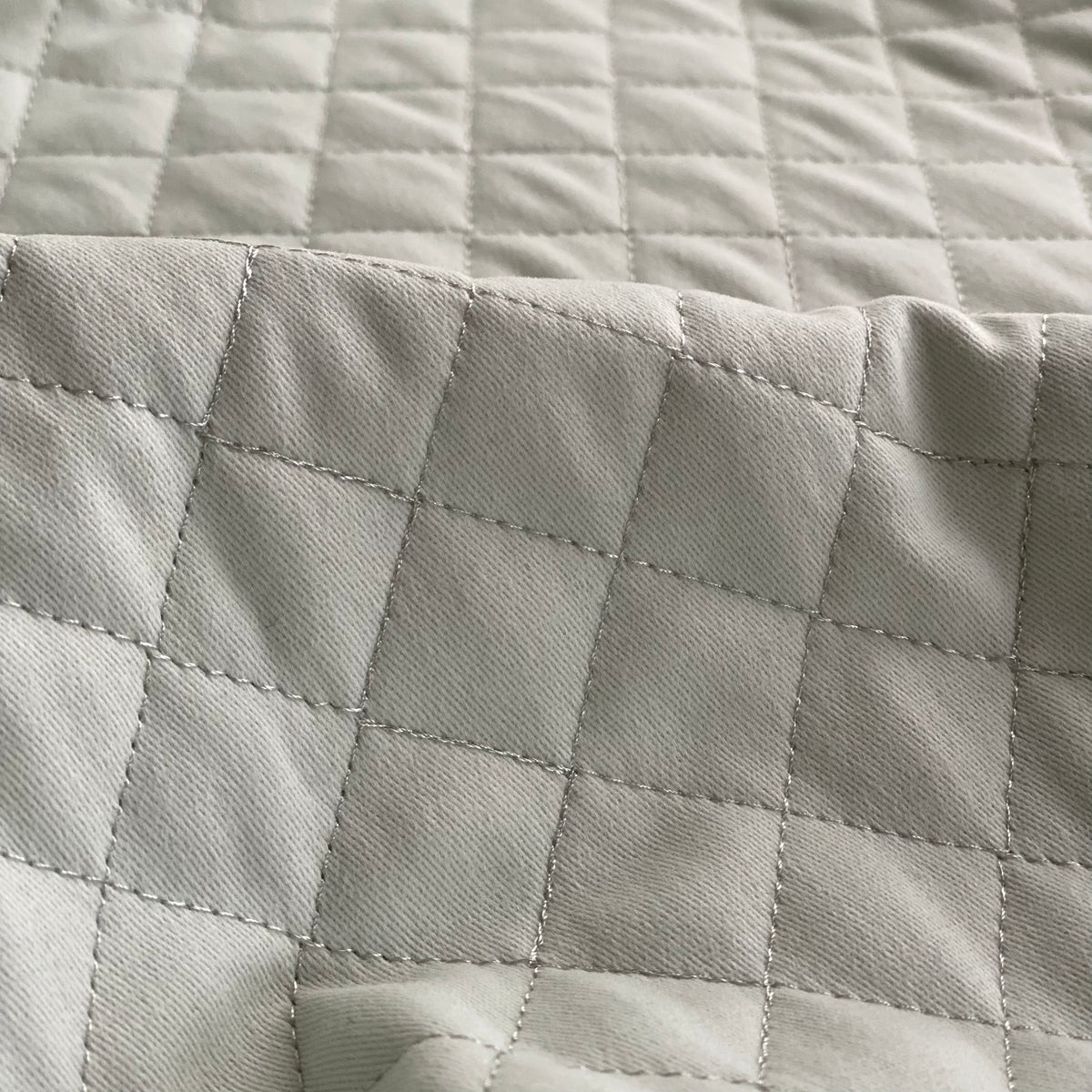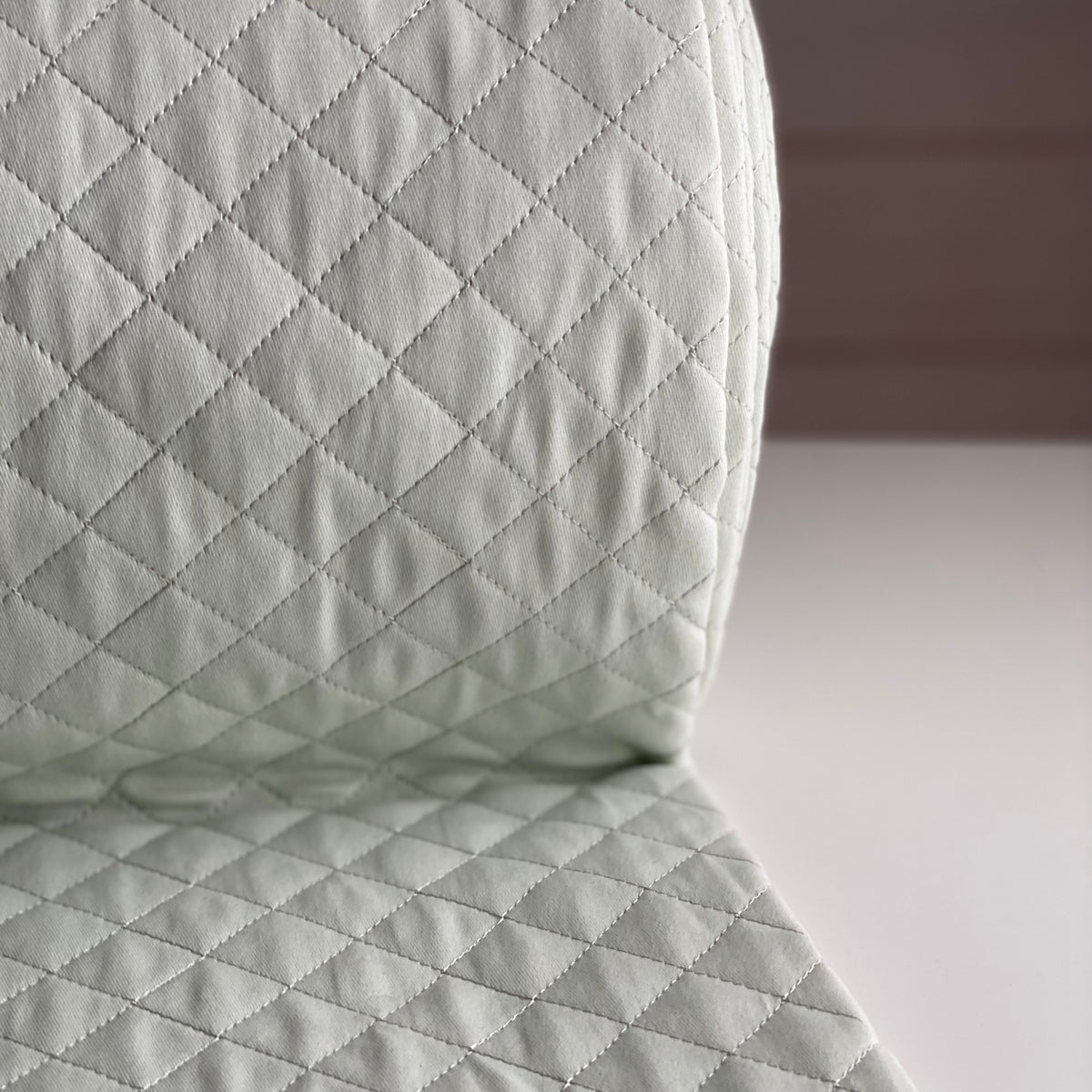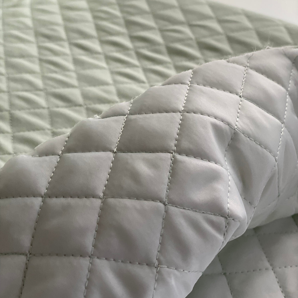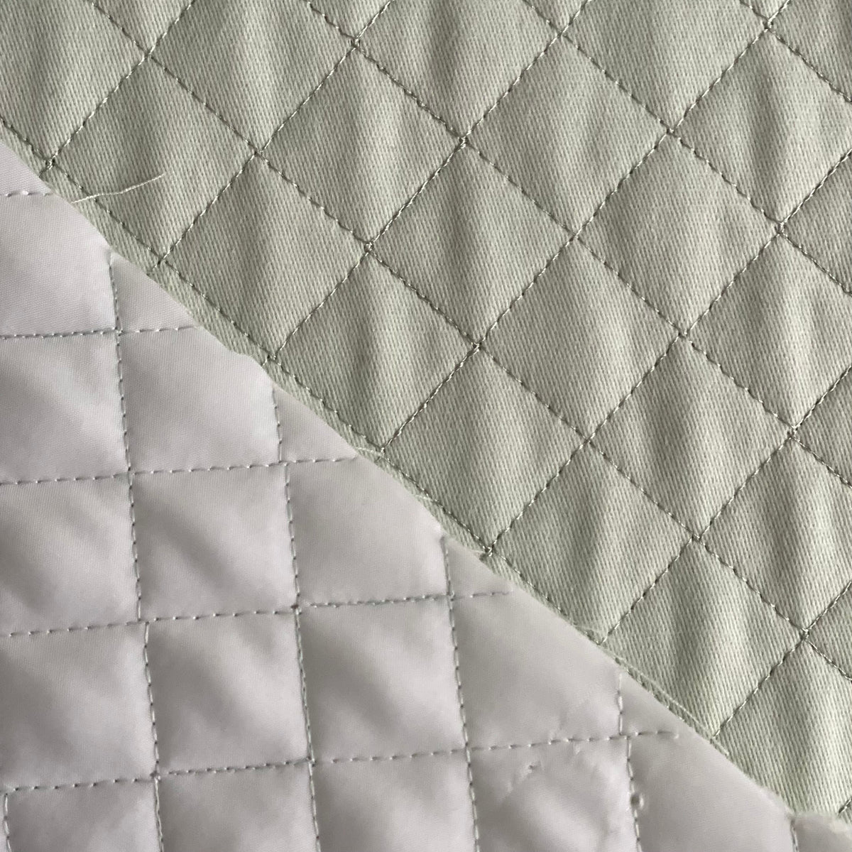 Quilted woven denim fabric in green with elastane for added comfort. Crosshatch stitched design on a layer of cotton rich denim fabric with a light thermal poly wadding for warmth and texture. Ideal for coats, jackets, gilets (or bodywarmers), pet clothing and more. Super quality with a nice back so that an inner lining is not necessary.