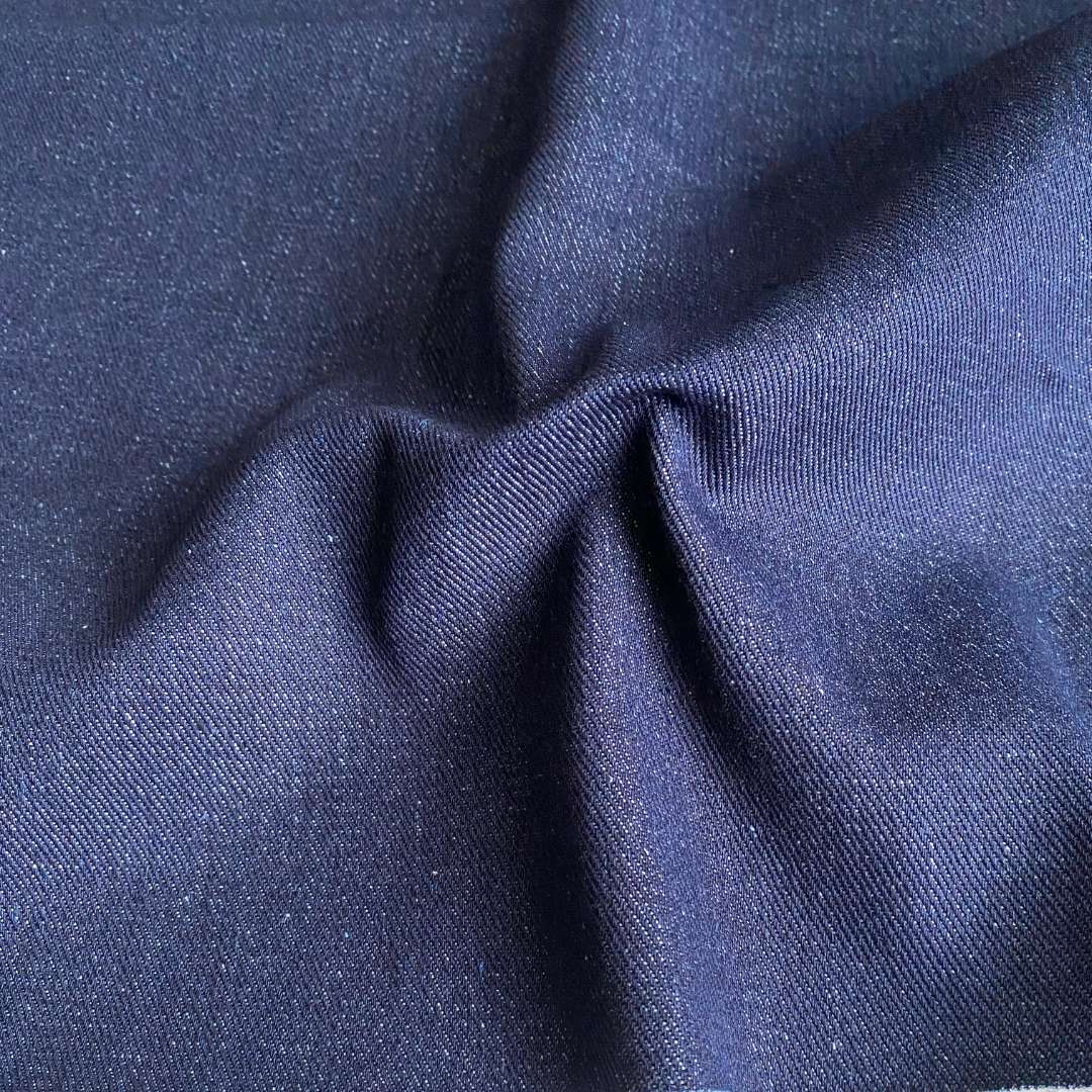 This Japanese-inspired raw denim is really quite unique for home sewing. This denim is medium to heavy-weight (12oz) with a deep indigo colour. The fabric is made from 100% recycled cotton. Because of that, there is no statement contrast selvedge as otherwise common in Japanese denim. However the benefit of the recycled material is that there is minimal shrinkage. The fibres have already been shrunk in their previous life so you can expect it to be a stable material.