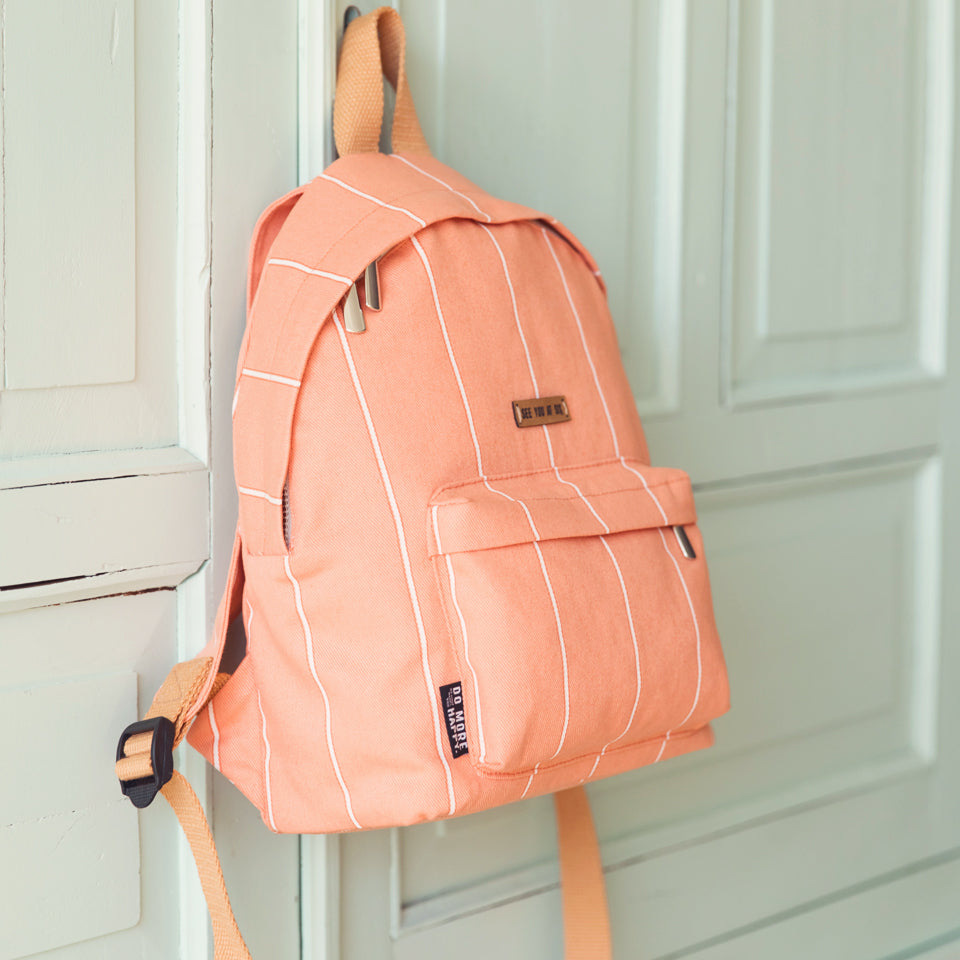 See You At Six - Verticals Cotton Canvas Gabardine Twill Fabric - Melon Punch - Priced per 0.5 metre