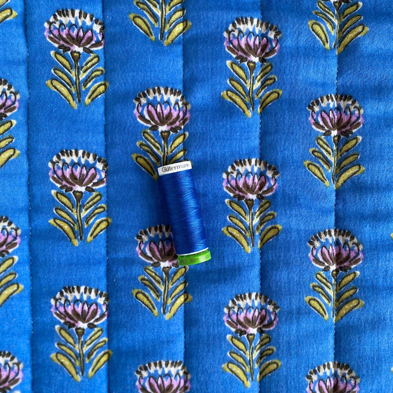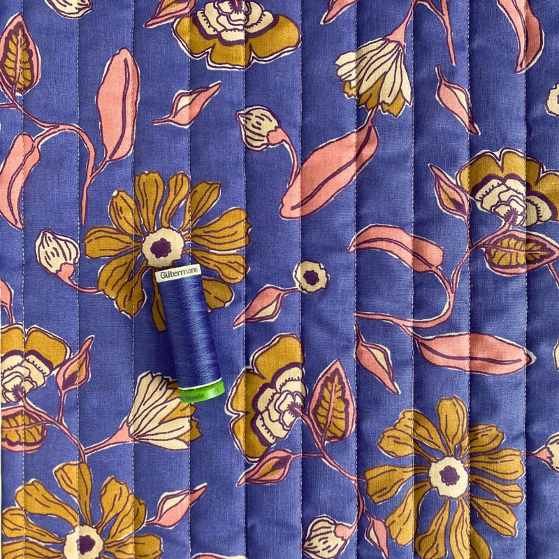 Quilted Reversible Cotton Fabric - Blue-Purple + Yellow