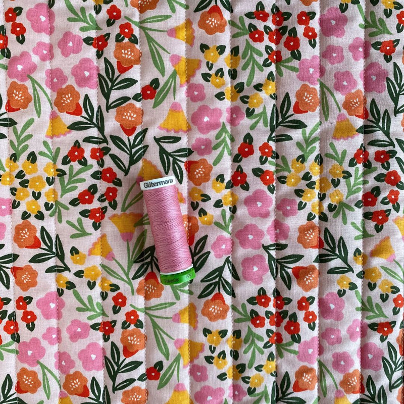 Quilted Reversible Cotton Fabric - Pink + Ecru