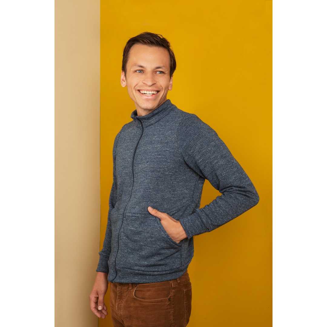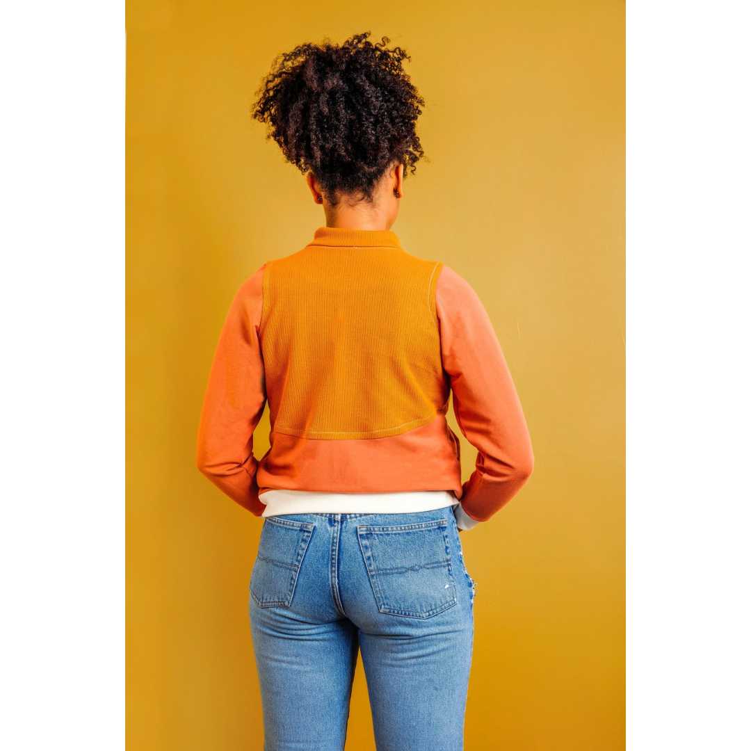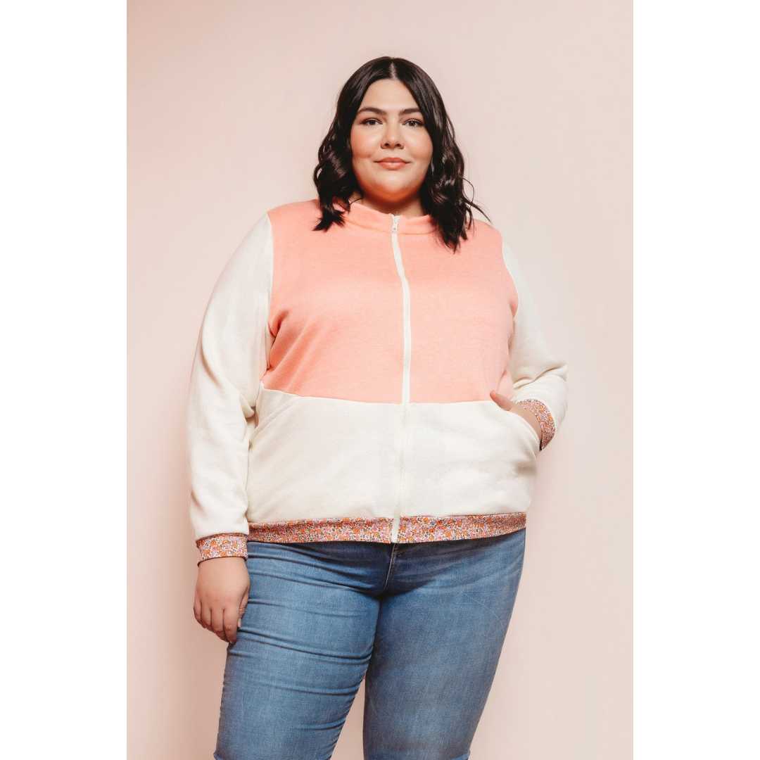 Unisex Arlo Track Jacket sewing pattern from Friday Pattern Company. The Arlo Track Jacket is the perfect lightweight layer. It features a sport collar, interesting seamlines, and comfortable front pockets. The Arlo is fitted without being tight and comes with three length options: short 22”/56cm, medium 24”/61cm, and long 26”/66cm. It is the type of zip-up you can wear on its own in autumn and under a warm coat in winter. This is a unisex pattern and looks great on all gender expressions! This pattern is intermediate but is achievable by the confident beginner.