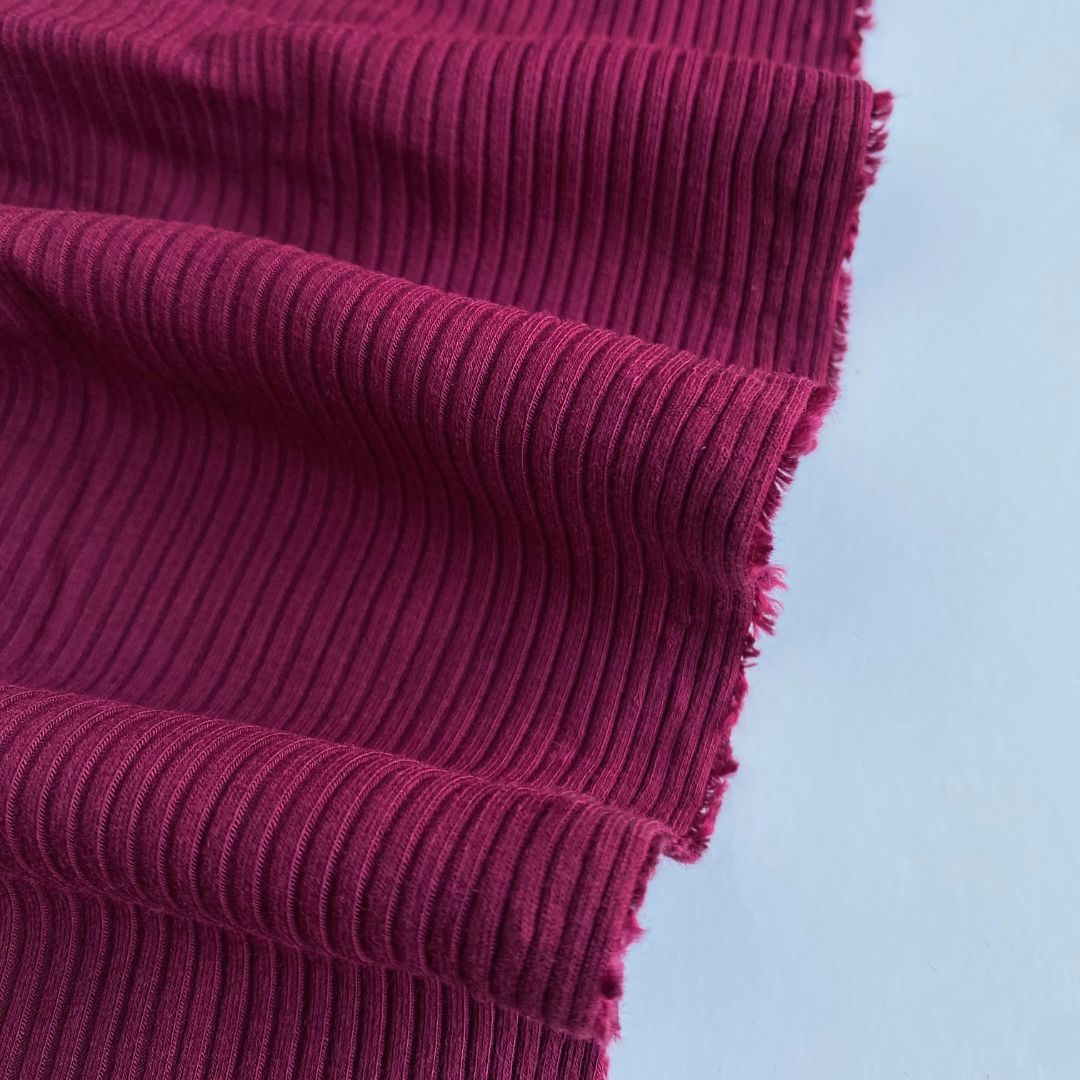 This mid-weight bamboo rib knit offers exceptional softness and a smooth, fluid drape. Crafted from a bamboo and spandex blend, it provides reliable stretch and recovery, ensuring both comfort and durability. This buttery soft rib is perfect for form-fitting tops and dresses, and its medium weight gives it excellent opacity and year-round versatility.