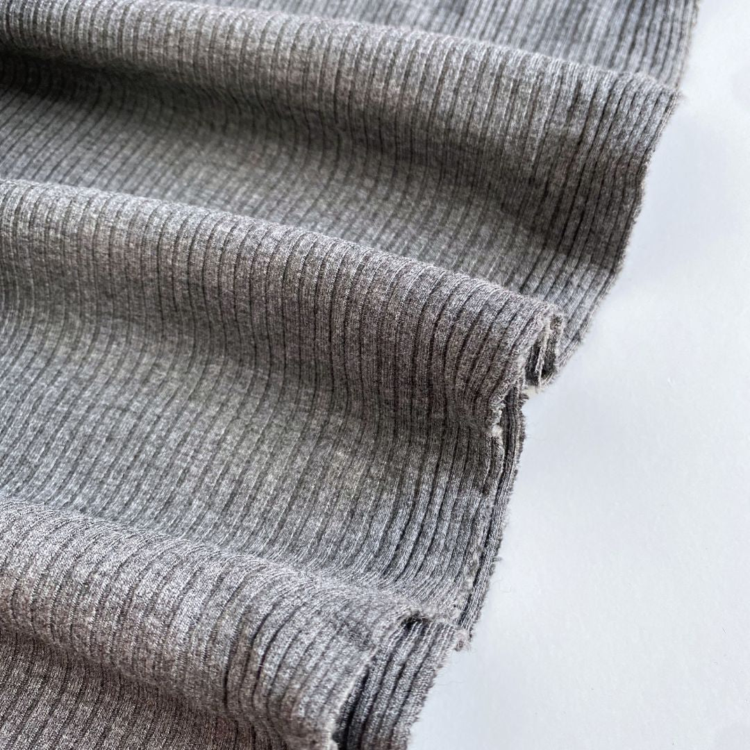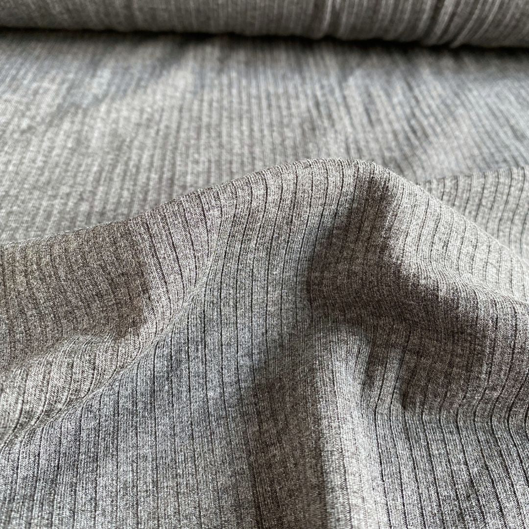 Bamboo Rib Knit Fabric - Dark Heather Grey