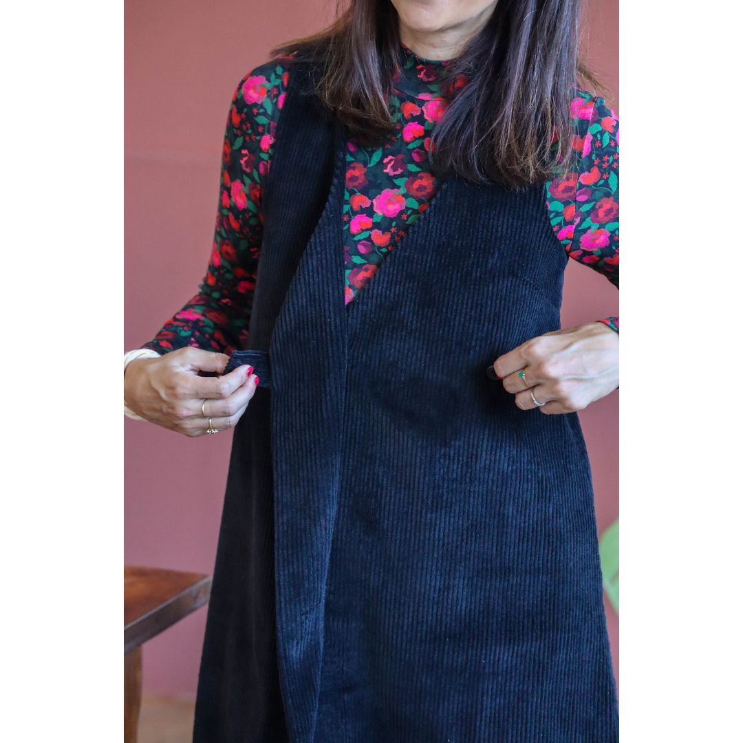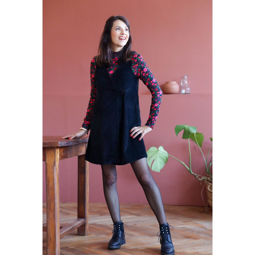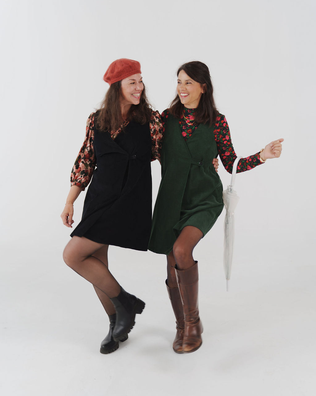 The Dorothea wrap pinafore dress is an easy-to-wear piece full of style. With its A-line shape and crossover V-neckline, it’s designed to be layered for versatile looks throughout the seasons. You can choose between two fastening options: a button placket or a strap with D-rings. Finished with a facing, the inside is beautifully clean and polished.