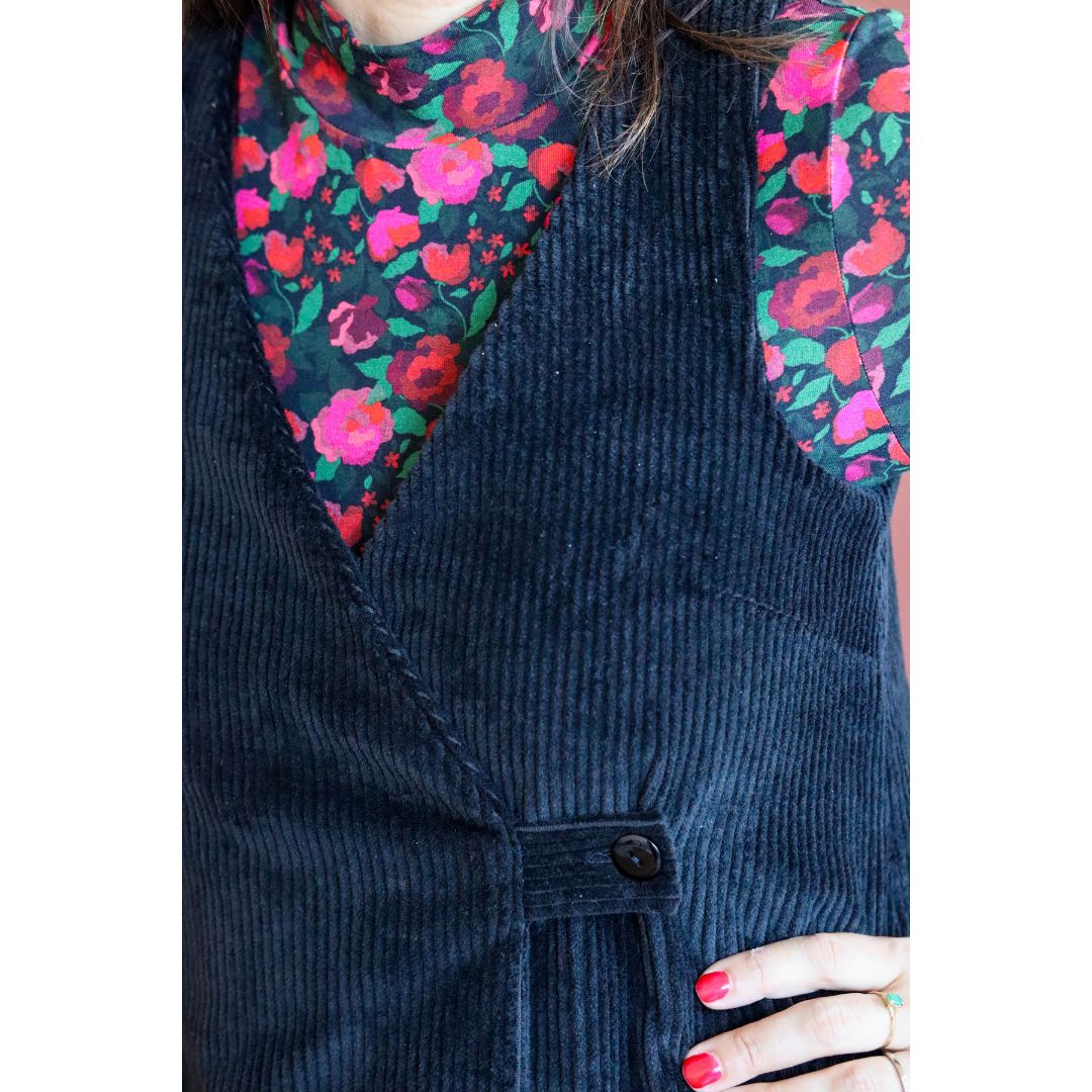 Suitable fabrics for this project are woven structured fabrics, such as denim, corduroy lightweight wool, or gabardine.