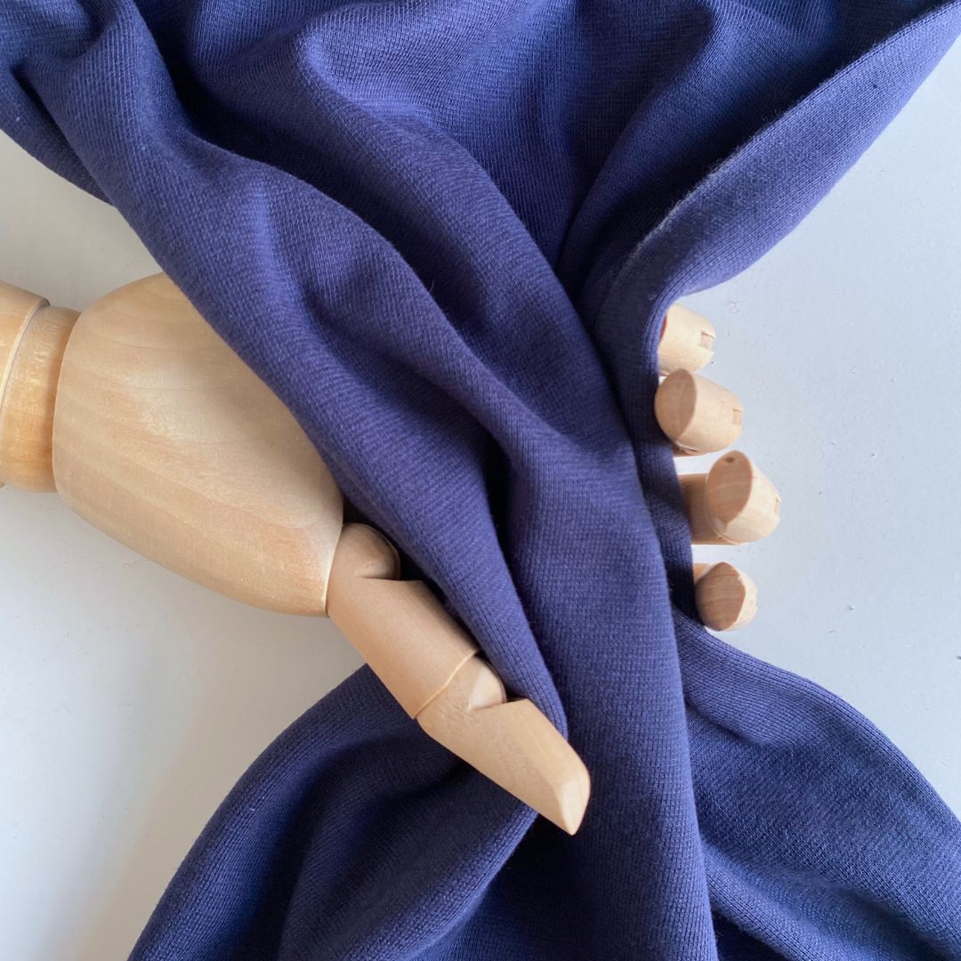 Super quality circular knitted cuff fabric in navy. This stretch knit is perfect for cuffs, collars, wristbands, neckbands and waistbands.