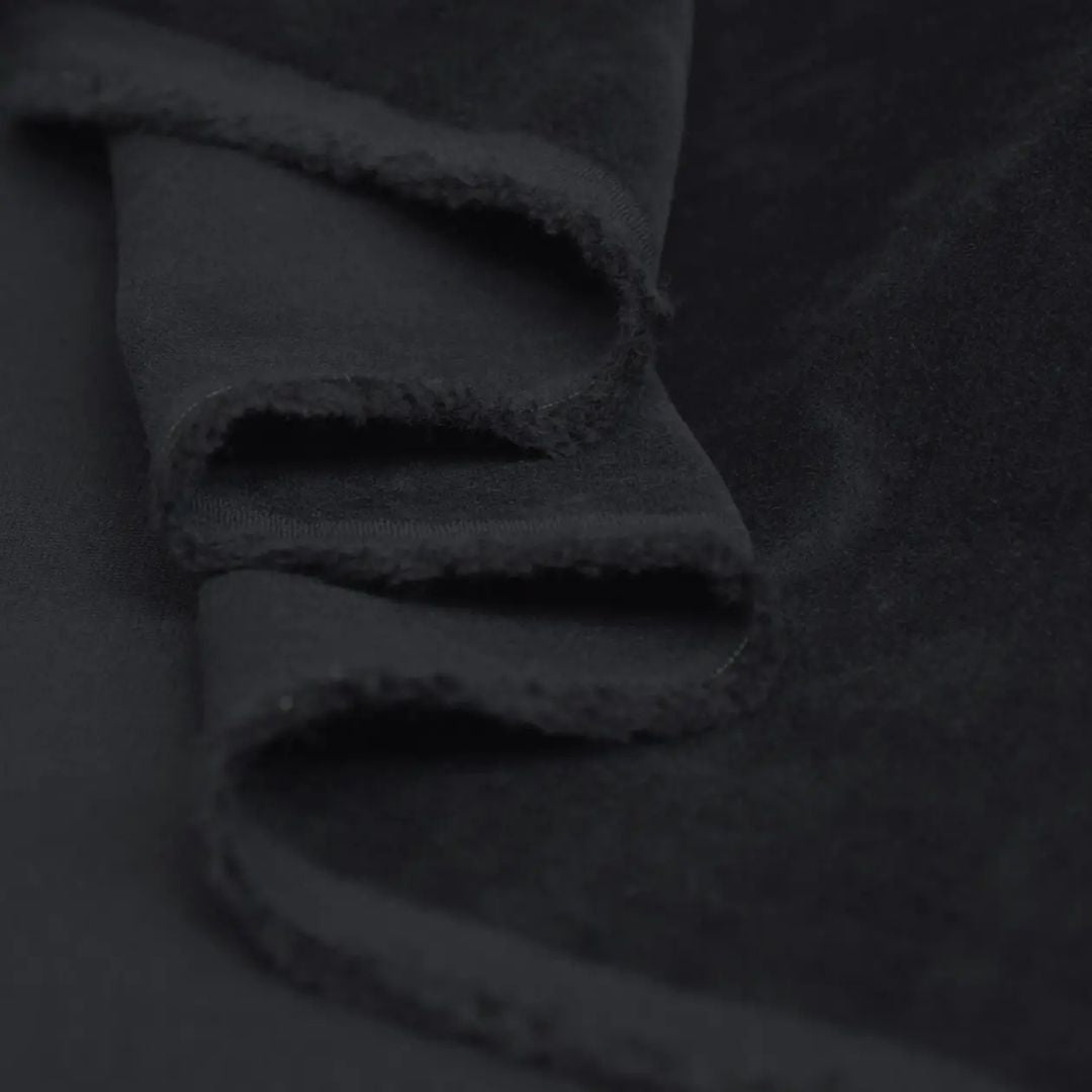 Elegant, deep black velvet with a soft sheen and structured drape. The added stretch ensures optimal comfort while maintaining shape: ideal for form-fitting garments without constraint.