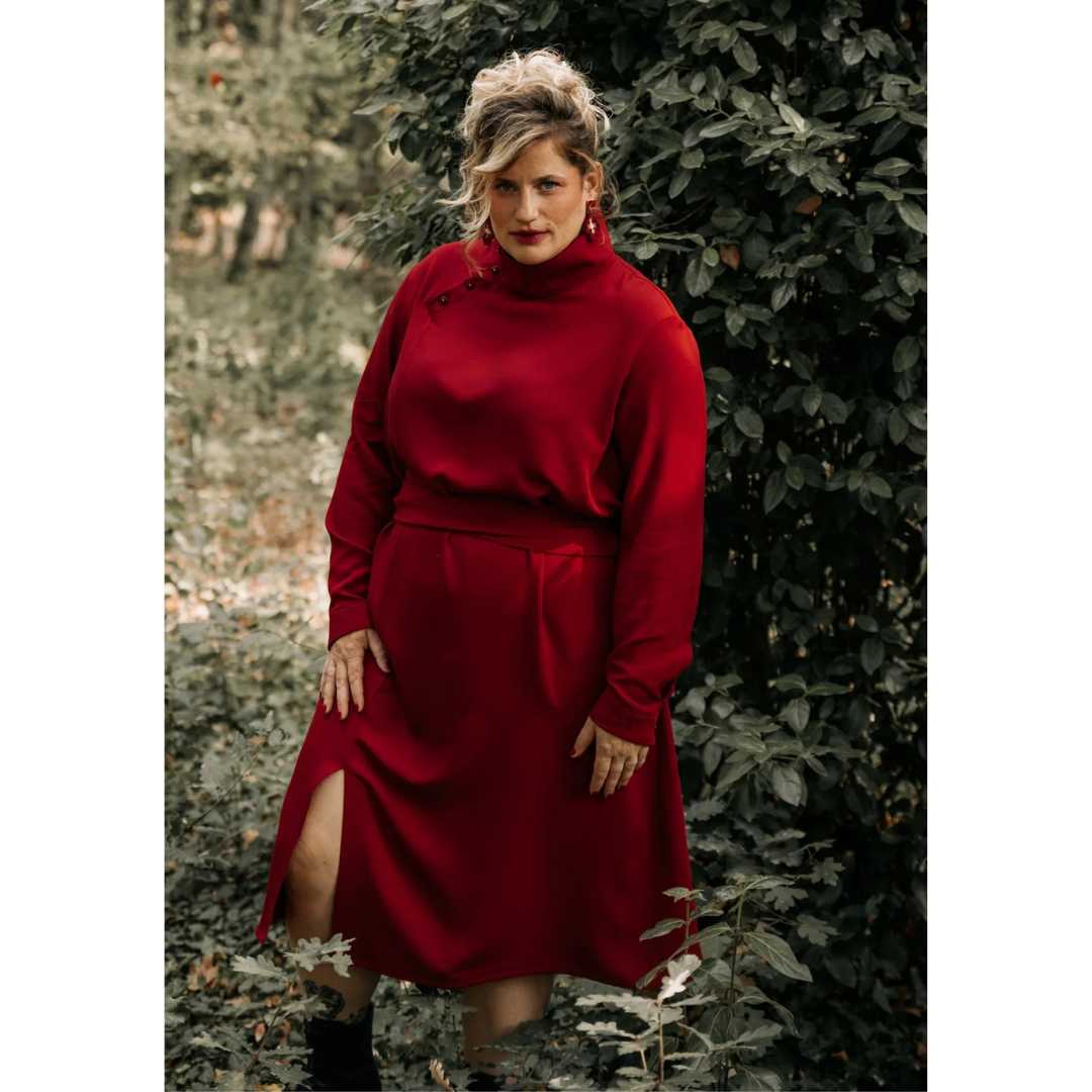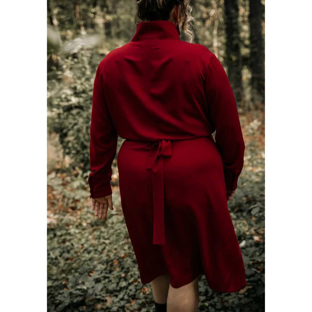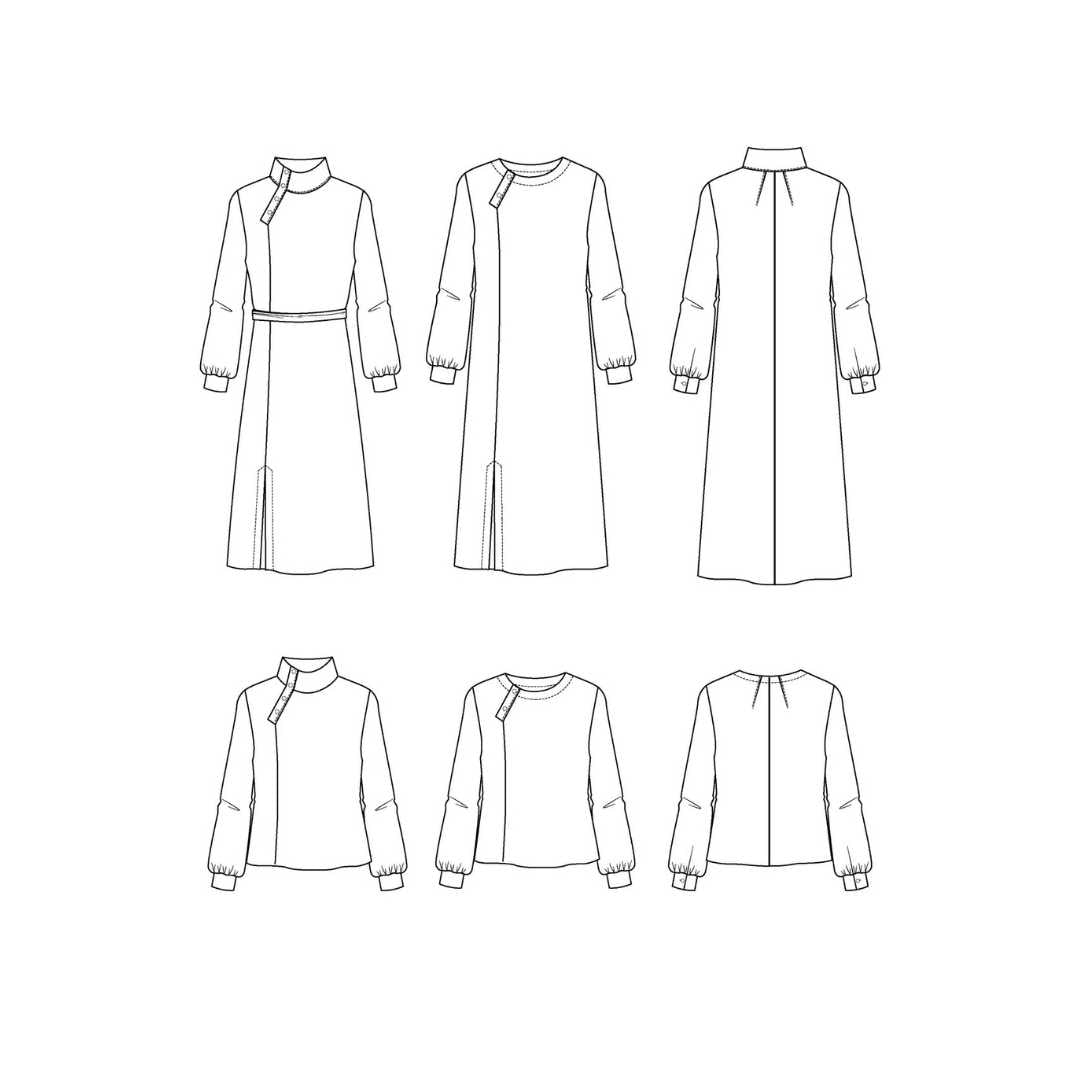 The pattern is available in 4 versions: A below-the-knee length dress with or without collar or a blouse with or without a collar.