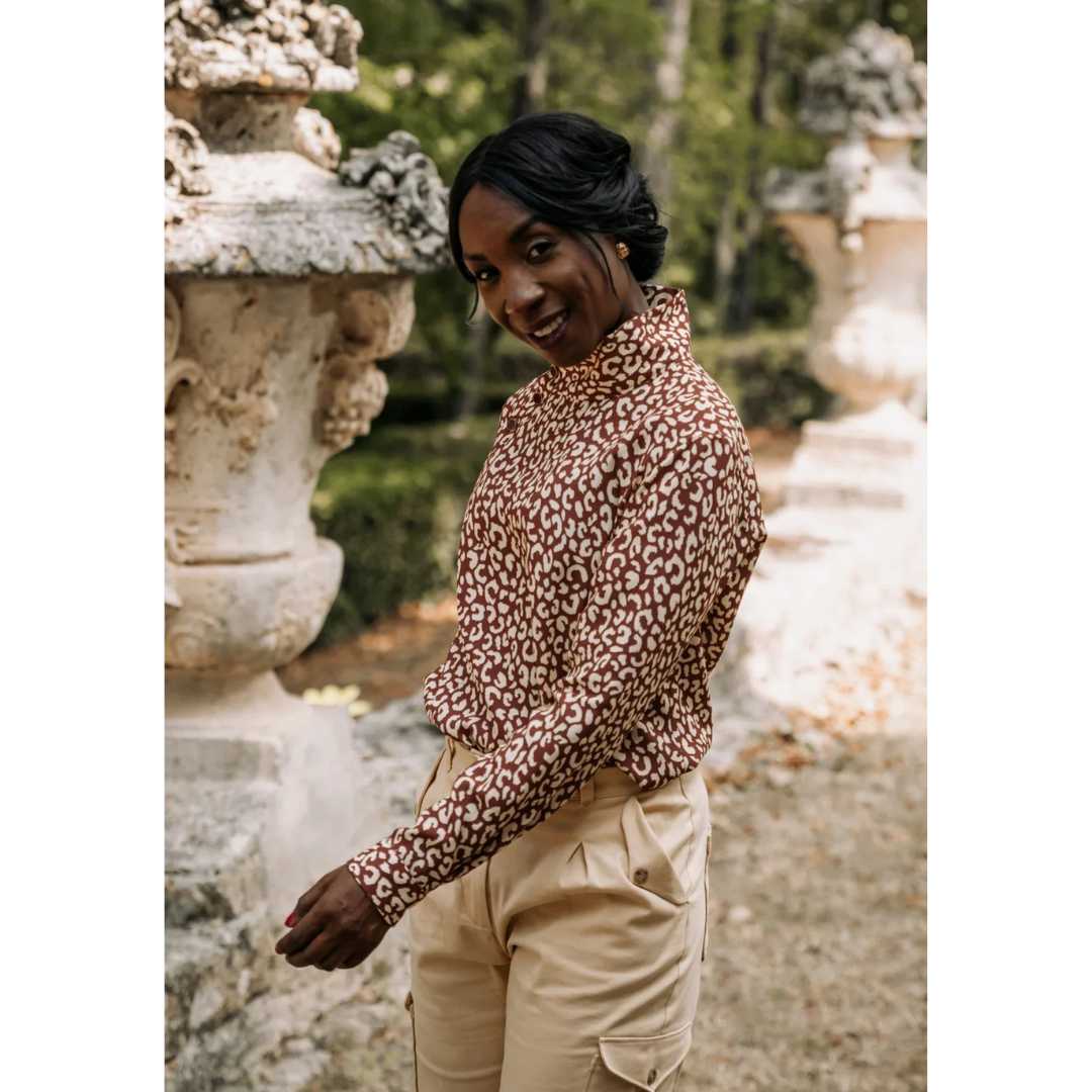 Light to medium-weight fabrics (80 to 200 g/m2), such as fine poplin, twill, crepe, fine jacquard, fine, supple denim, cotton, viscose, silk. The collar and cuffs will be held in place by the interfacing, so you can therefore choose a soft fabric for the garment.