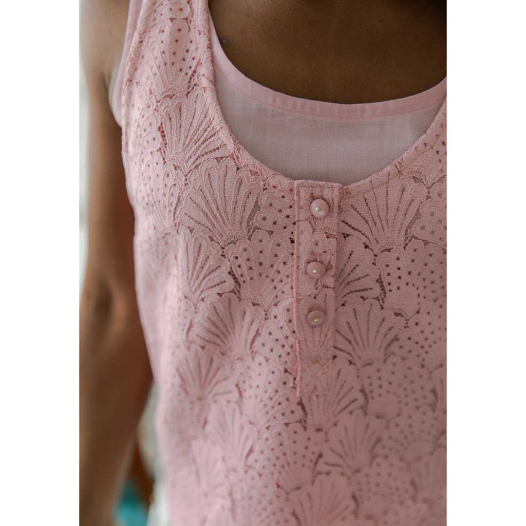 Each top is perfectly finished with bias binding at the armhole and neckline, and French seam construction. You can combine them by slipping the second under the first, or wear them separately. The more low-cut tank top will look great over a swimsuit, a bra, pretty lingerie you want to show off, or next to the skin for the more daring of you, while the second will be the perfect basic for everyday wear.
