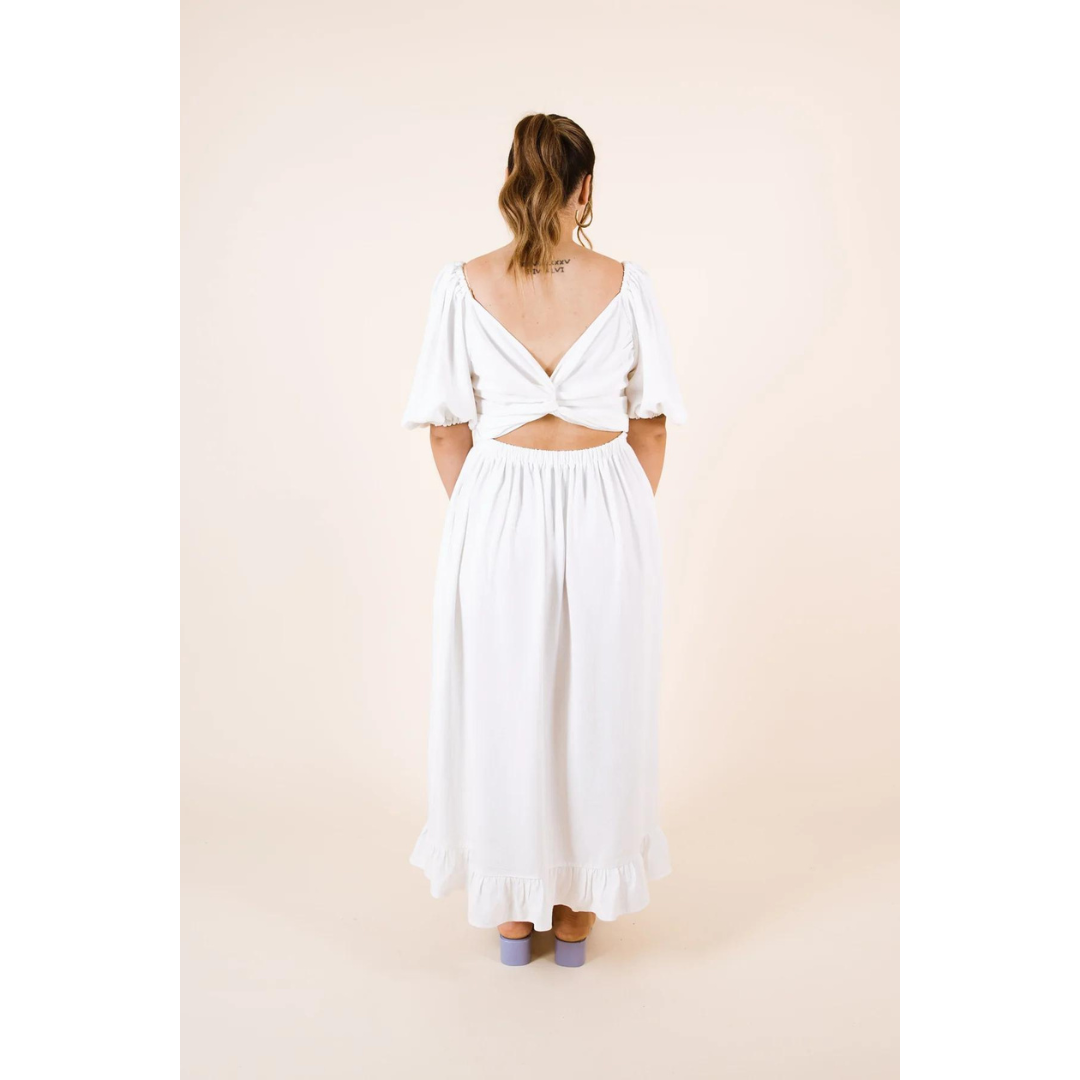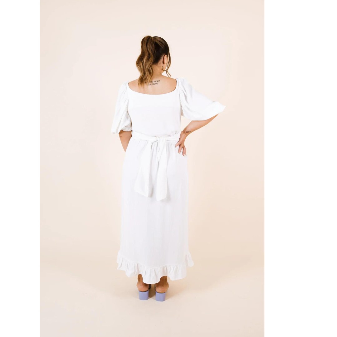 Featuring beautiful puff sleeves, a frill hem, an elasticated waist section and of course, pockets! The perfect occasion gown with no end of compliments coming your way.