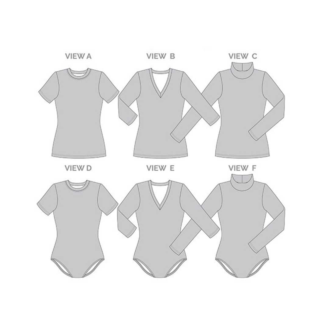 The ultimate wardrobe builder fitted tee and bodysuit. Pattern features figure hugging close fit, three neckline options, three sleeve lengths and tee or bodysuit versions.